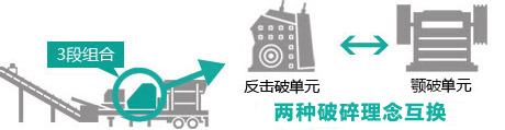 一種車身為4種機(jī)型通用,喂料單元互換系統(tǒng)、破碎單元互換系統(tǒng)和篩分單元互換系統(tǒng),只需再投資單機(jī)設(shè)備成本,短時(shí)間內(nèi),即可在同一車身上實(shí)現(xiàn)不同型號(hào)喂料單元互換系統(tǒng),反擊破與顎破互換系統(tǒng),不同型號(hào)振動(dòng)篩互換系統(tǒng),整機(jī)各系統(tǒng)之間的匹配,適應(yīng)場(chǎng)合更廣泛,破碎功能更強(qiáng),客戶的消費(fèi)品得到較大體現(xiàn)。該模塊中配置可選全車載皮帶機(jī)。